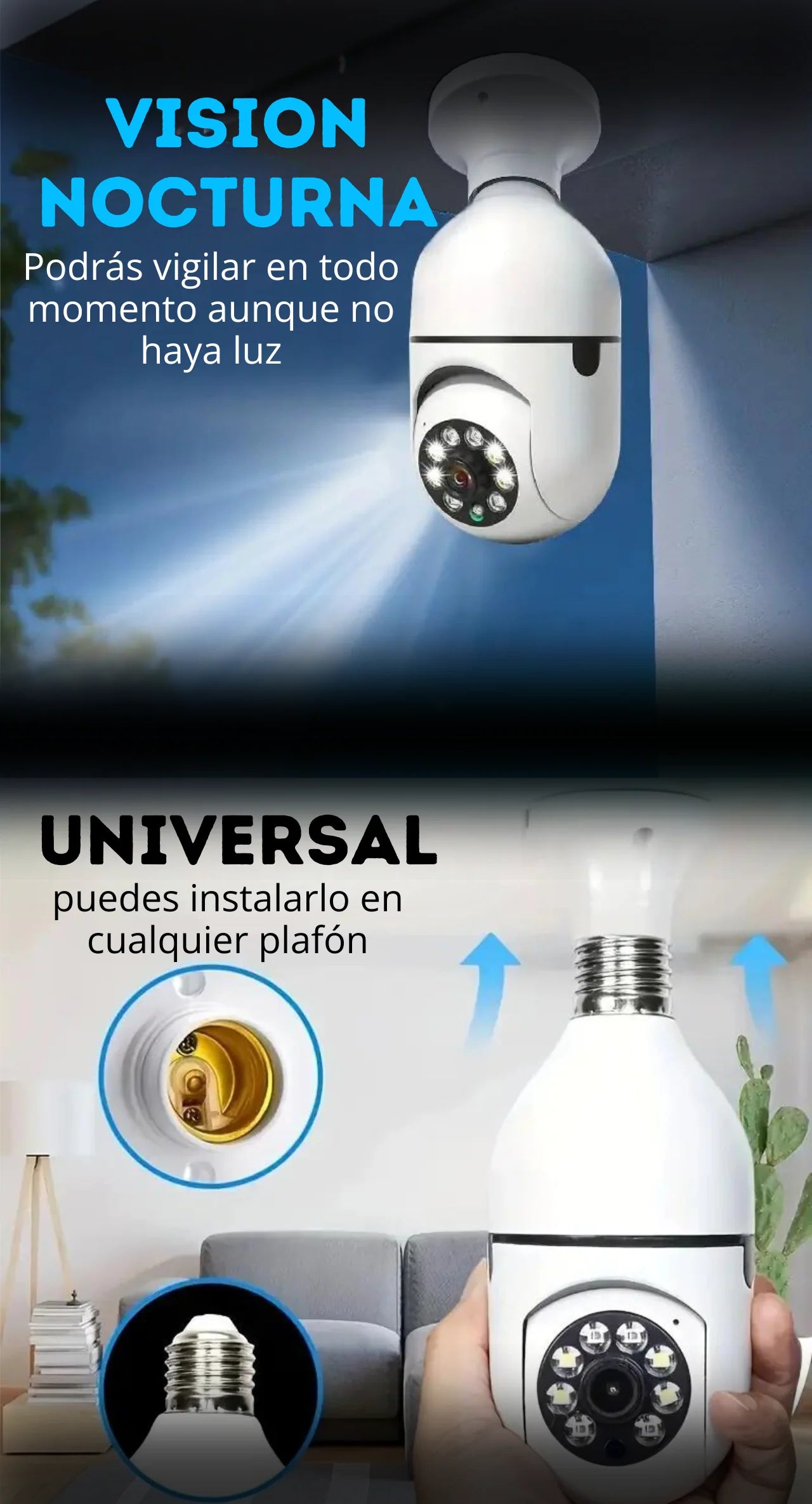 Convierte cualquier foco en un sistema de seguridad inteligente. Instala en segundos, vigila en tiempo real y controla todo desde tu celular.